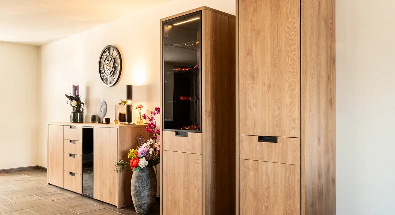 Jouw kast moet passen bij jouw interieur. Daarom bieden we eindeloos veel mogelijkheden. Kies uit klassiek wit, warm hout of stoer antraciet. Ga voor strakke greeploze deuren of juist sfeervolle paneeldeuren. Combineer open vakken met gesloten delen. Voeg verlichting toe voor extra sfeer. Samen stellen we de perfecte combinatie samen die past bij jouw stijl en budget.